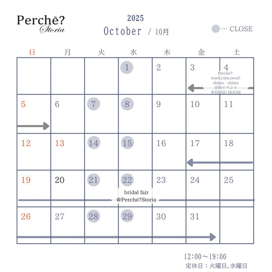 Perché? Bridal Fair @ Perché?storia 2025.10.17 fri .... 10.31 fri 12:00 - 19:00