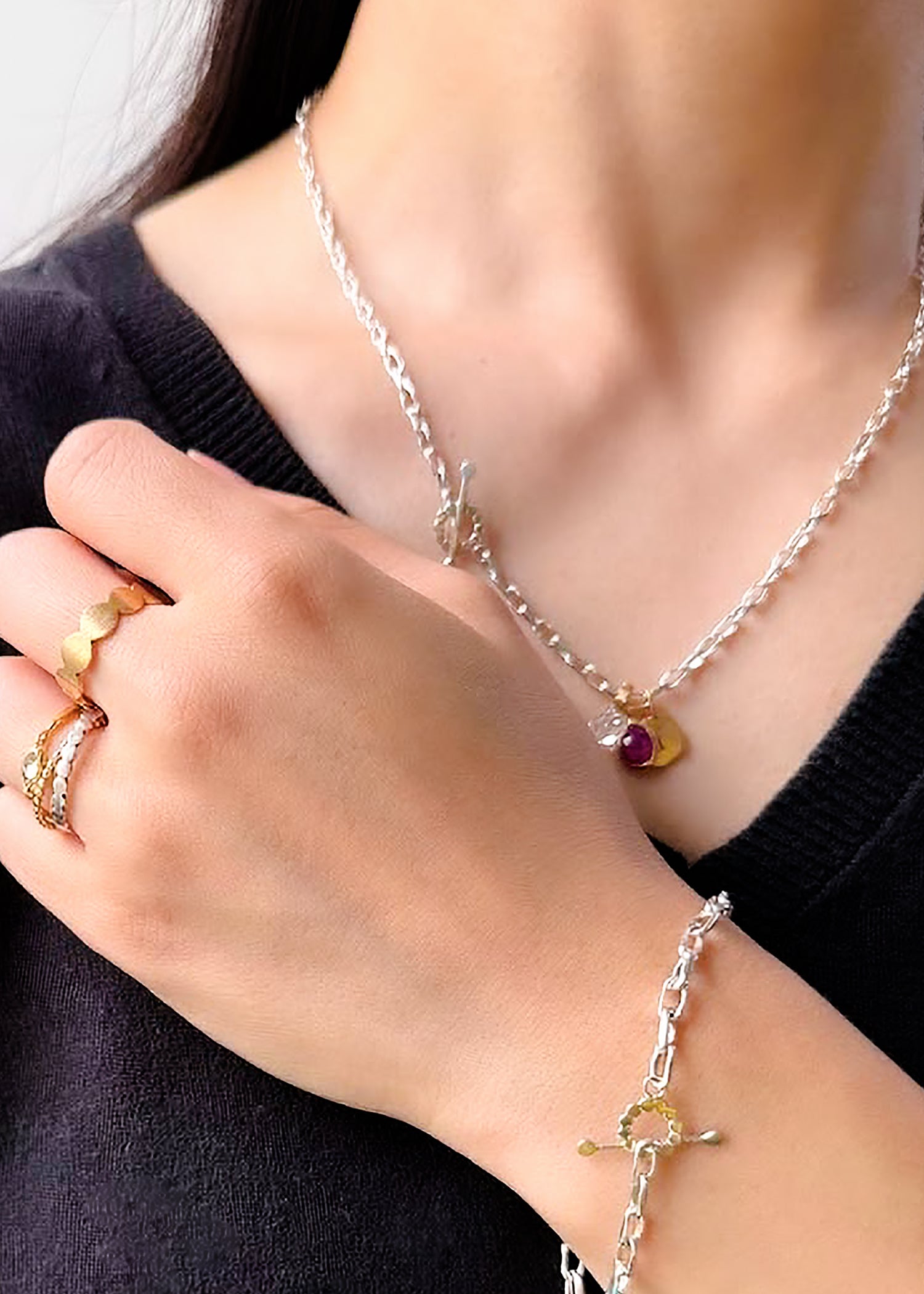 紫色の宝石といえばアメジストを連想する人も多いほど、その美しい紫色が特徴的で、内包物が少ないことから透明度が高く、ガラスのような光沢を放っています。