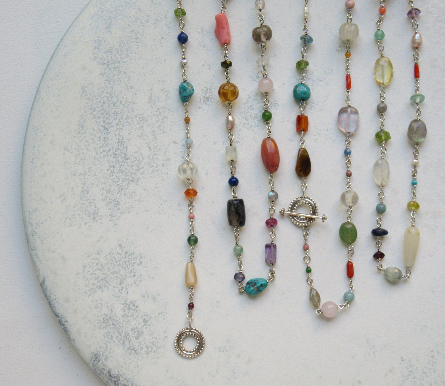 色とりどりの天然石が連なる、 マルチストーンシリーズ。 ひと粒ごとに異なる表情があり、 身に着けるたびに新しい輝きを見せてくれます。